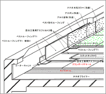 | ※立上がり隅部は、ベストルーフィングT・1 幅300o以上にて増張りをする。 |